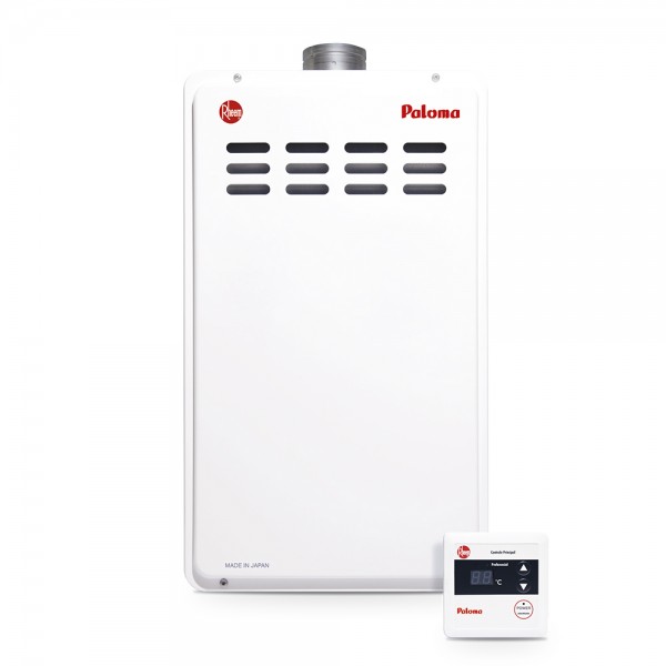 quecedor a gás instantâneo para uso residencial. Possui sistema eletrônico, com exaustão forçada e tecnologia japonesa, fabricada pelo Grupo Paloma, no Japão.